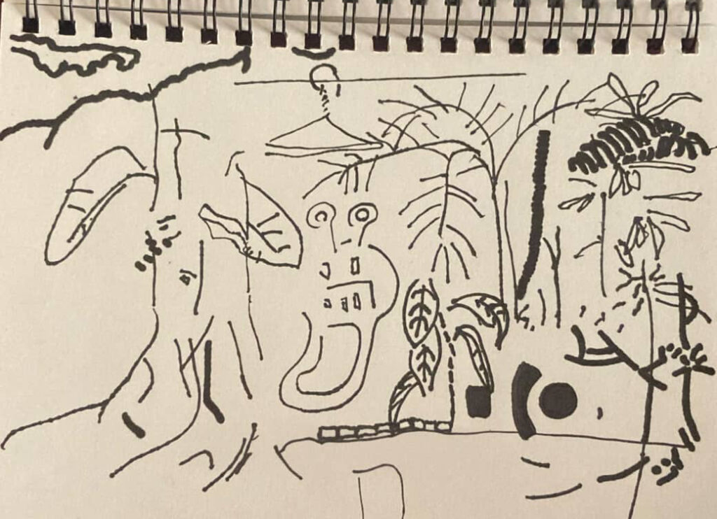 トンサイにきて思ったことは。たくさん。枝みたいな細くてちっちゃい蛇。おっきいトカゲ。ちっちゃいトカゲ。でかいナマコ。マンカ。モンキー。猿。3種類いる。